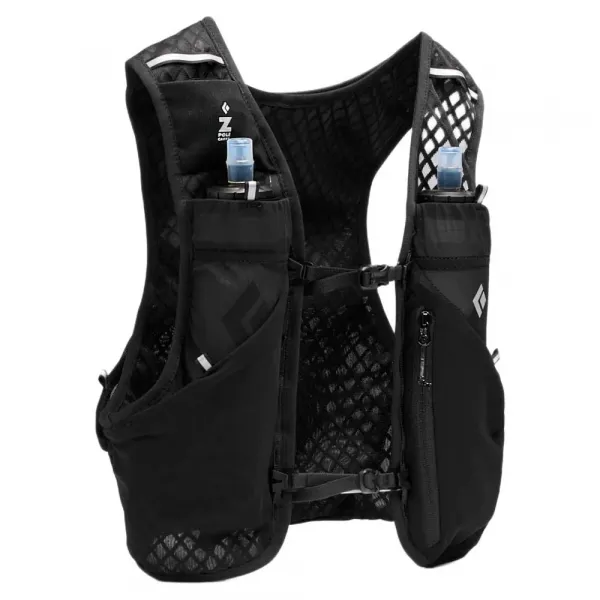 조끼에는 500ml 소프트 플라스크 두 개(포함)를 수납할 수 있는 앞면 포켓 두 개가 있습니다.