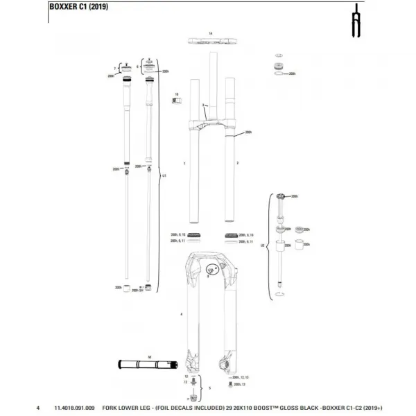 ROCKSHOX BoXXer C1 2019+ 29´´ Boost Ultimate 포크 로어 레그 튜브.