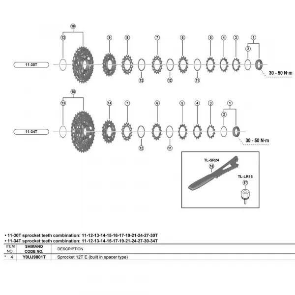 ---기술 사양:제품: SHIMANO ULTEGRA CS-R8100 / CS-R8101 12단 카세트시리즈: ULTEGRA R8100카테고리: 예비 부품하위 카테고리: 카세트단수: 12단변속 기술: HYPERGLIDE+호환 체인: SHIMANO 12단 로드호환 프리허브 유형: SHIMANO HG 스플라인 L2 (11단 로드 프리허브 바디에 적합) 11-30T: 11-12-13-14-15-16-17-19-21-24-27-30T 11-34T: 11-12-13-14-15-17-19-21-24-27-30-34T