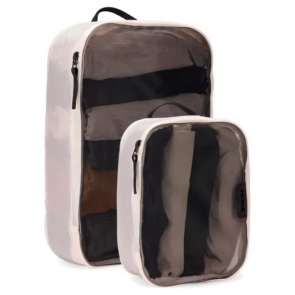 Thule 패킹 큐브 세트는 중간 사이즈 큐브와 작은 사이즈 큐브 하나씩 포함되어 있으며, 기내 반입 수하물에 완벽하게 들어가면서도 다른 물건을 위한 공간을 남겨두도록 디자인되었습니다.