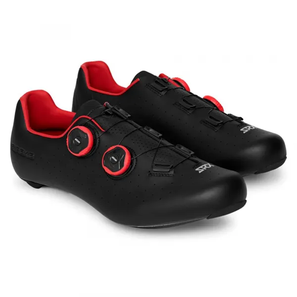 특징:- 극세사 인조 가죽 소재- 통기성 향상을 위한 미세 천공- 빠르고 쉬운 조절을 위한 나일론 코팅 강철 와이어 끈이 있는 ATOP A-A41 듀얼 다이얼 시스템- OrthoLite? X40™ 이중 밀도, 탈착식 및 통기성 EVA 깔창- 내구성과 보행 시 접지력을 위한 고무 힐 및 토 패드가 있는 탄소 섬유 밑창- 3볼트 클리트와 호환 (시마노 SPD-SL / 룩)- 뒤꿈치 부분 반사 디테일- ATOP 시스템 교체품 및 그립 깔창으로 맞춤형 핏 옵션 제공사양:- 무게: 240g (43 사이즈 기준)- 향상된 동력 전달을 위한 14.