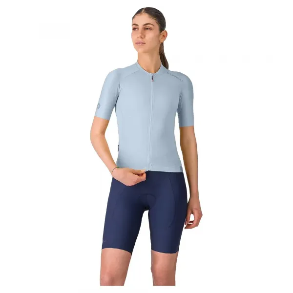 통기성, 편안함, 완벽한 핏을 위한 Castelli-엔지니어드 Air_O Stretch 패브릭 통기성 및 공기역학에 최적화된 패브릭 편안함을 위한 컷되지 않은 소매 끝 귀중품을 위한 네 번째 지퍼 보안 포켓이 있는 3개의 뒷주머니 사용하기 쉬운 지퍼 풀이 있는 전체 길이 YKK® Vislon® 지퍼 허리를 고정하기 위한 실리콘 처리된 허리 밴드 UPF 30.