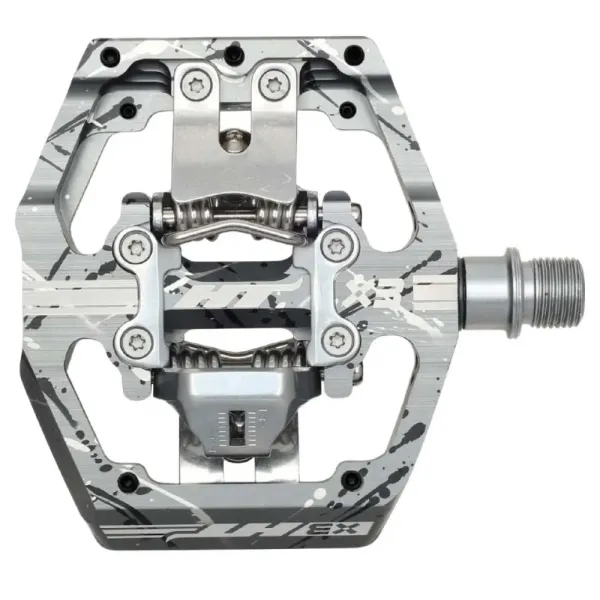 사양: - 페달 무게: 476 g - 클릿 무게: 64 g - 크기: 85x90 x 14 mm - 본체 재질: 압출 알루미늄 / CNC 가공 - 스핀들: CNC 가공 크로몰리 - 페달 베어링: 실드 베어링 / 2 x IGUS 부싱 - 클릿 시스템: X1E / X1 / X1F / X2 / X3 (HT 독점 시스템) - 핀: 각 면당 5개의 그립 핀