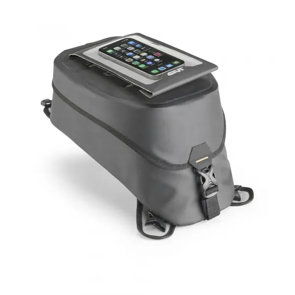 4개의 스트랩을 사용하여 엔듀로 오토바이에 장착하도록 설계된 10리터 용량의 방수 탱크백으로, 안전하고 안정적인 부착이 가능합니다.