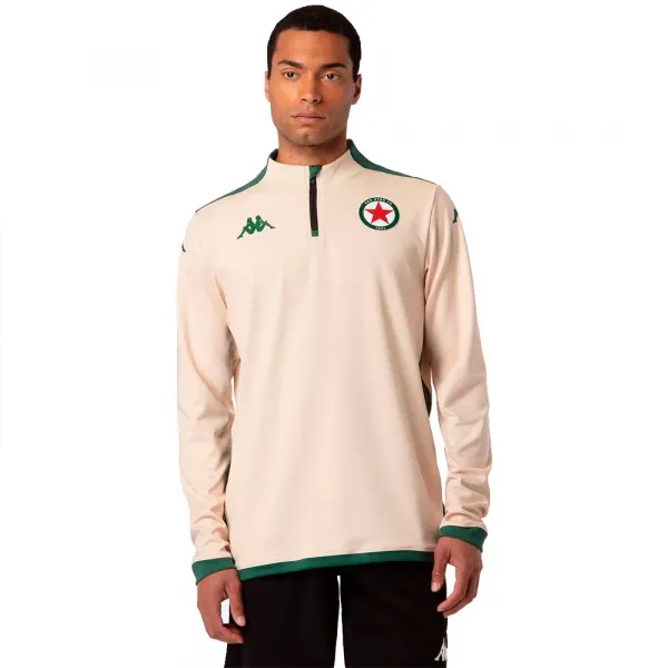 하프 지퍼 여밈, 하단 소매, 하단 테두리, 어깨 및 측면의 인서트, 소매의 양각 그래픽.
