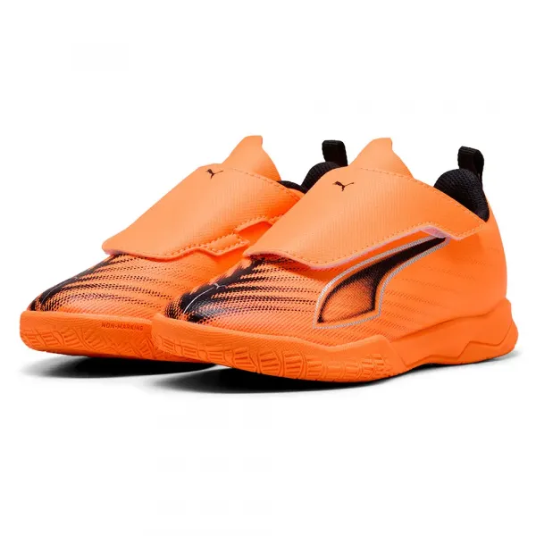 가벼운 지지 프레임은 갑피에 안정성을 더하고, 로우 프로파일의 논마킹 고무 아웃솔은 더 빠른 실내 축구를 가능하게 합니다.