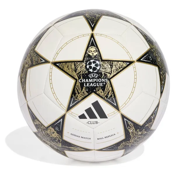 황금빛 색상을 자랑하는 이 특별한 아디다스 클럽 축구공은 UCL 공식 경기구 디자인과 클럽 배지를 결합하여 이 둘을 하나로 묶습니다.