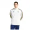 기술 사양: * 제품 유형: 재킷 * 대상 그룹: 남성, 성인 * 팀: 레알 마드리드 * 잠금 방식: 전체 지퍼 * 칼라: 스탠드업 퍼넬 넥 * 브랜딩: 수 놓아진 레알 마드리드 크레스트 및 아디다스 트레포일 로고 * 재질 유형: 합성 인터록 원단