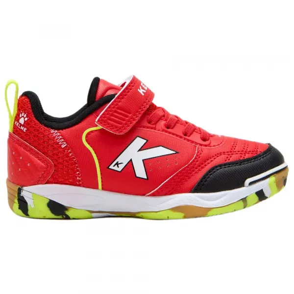 기술 사양: * 경기 표면: 실내 코트 / 풋살 * 플레이어 수준: 초보자 * 대상: 남아, 여아 (유니섹스 디자인) * 잠금 시스템: 벨크로 스트랩 1개와 엘라스틱 끈 * 트랙션: 회전력 향상을 위한 피벗 포인트 및 민첩성 향상을 위한 플렉스 홈 * 주요 특징: 추가 보호 및 내마모성을 위한 강화된 토 박스