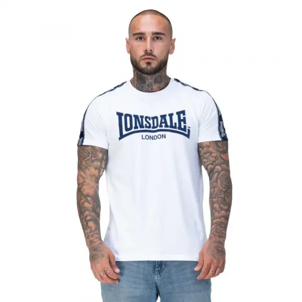 가슴에는 론즈데일 로고의 큰 투톤 플록 프린트가 있으며, 옆 솔기에는 유니언 잭 스타일 라벨이 있습니다.