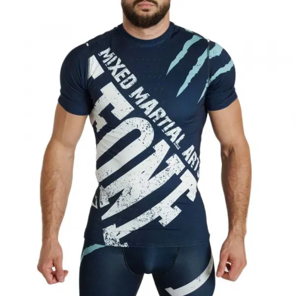 훈련 세션과 옥타곤에서 선수를 보호하기 위해 고밀도 원단으로 제작된 반팔 래쉬가드입니다.