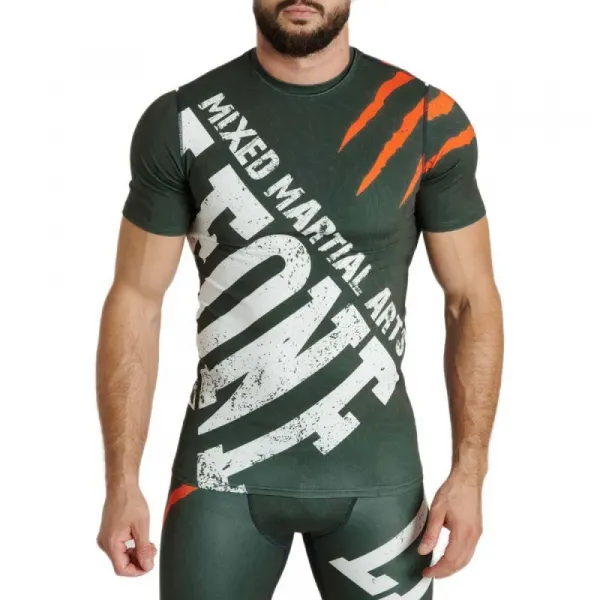 훈련 세션과 옥타곤에서 선수를 보호하기 위해 고밀도 원단으로 제작된 반팔 래쉬가드입니다.