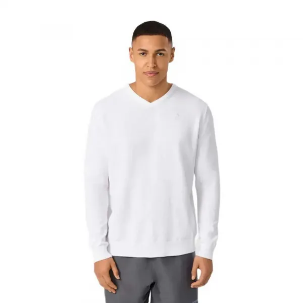 OFF COURT 컬렉션의 일부인 이 V넥 스웨터는 보온성과 통기성을 위해 100% 면으로 짜여졌습니다.