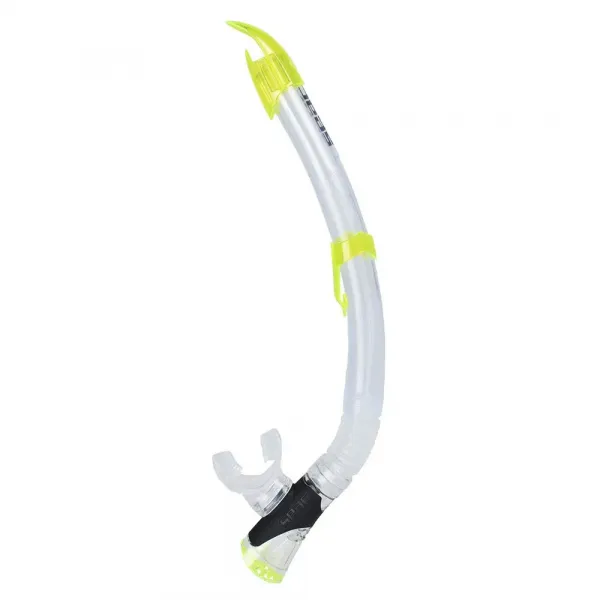 스노클링을위한 최고의 선택 인 SEAC Fast Tech 스노클은 물이 스노클링에 들어오는 것을 효과적으로 차단하는 안티 스플래쉬 탑을 특징으로합니다.