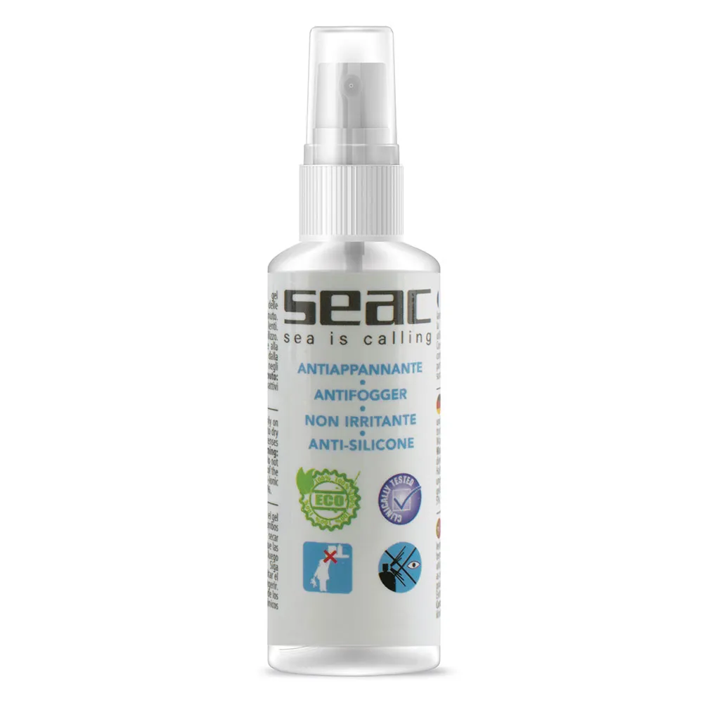 다이빙 마스크, 스노클링 마스크 및 수영 고글용 김서림 방지 스프레이 빠르고 효과적인 김서림 방지 효과 100% 천연 제품 (유해 화학 물질 없음) 비수중 활동에도 사용 가능 처방 안경에는 적합하지 않음 Seac 안티포그 바이오젤은 다이빙 마스크, 스노클링 마스크 및 수영 고글용 김서림 방지제입니다.