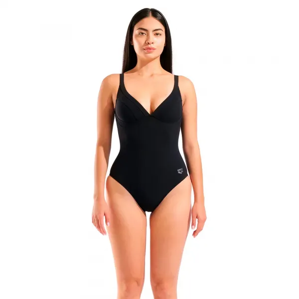 아름다움과 편안함을 동시에 느낄 수 있도록 디자인되었습니다! - 최고의 편안함, 지지력, 몸매 보정을 위한 특허받은 Sensitive® 원단으로 제작된 고품질 원단: 염소 저항성, UV 차단, 속건성, 재활용 폴리아미드로 제작.