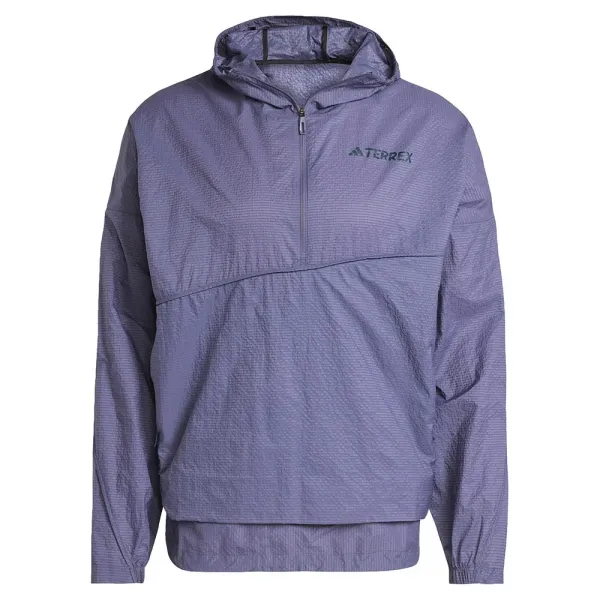 재활용 소재를 일부 사용하여 만든 가벼운 하이킹 바람막이.