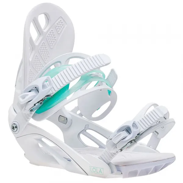 미디엄 플렉스 바인딩인 Lola는 가벼운 지지력과 편안함을 위한 반응성이 뛰어난 듀얼 앵클 스트랩 구조, 추가적인 충격 및 진동 흡수를 위한 풀 EVA 패딩 베이스 플레이트, 직관적인 지지력과 컨트롤을 위한 도구 없이 조절 가능한 비대칭 패딩 하이백을 갖추고 있습니다.