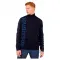 이 스웨터의 칼라는 통풍을 위해 열어두거나 보온을 위해 지퍼를 높이 올려 착용할 수 있습니다.