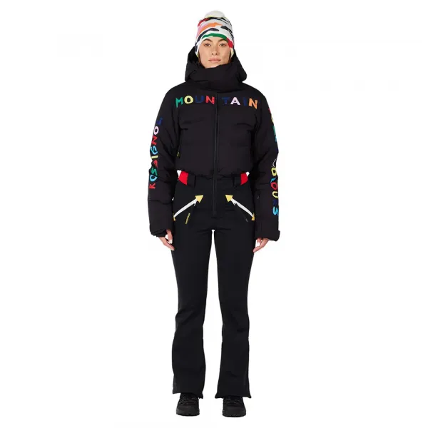 로시뇰 JCC 서브림 여성 스키 슈트는 프랑스 패션의 전설 장 샤를 드 카스텔바작의 색상과 그래픽으로 눈 덮인 슬로프를 짜릿하게 만듭니다.