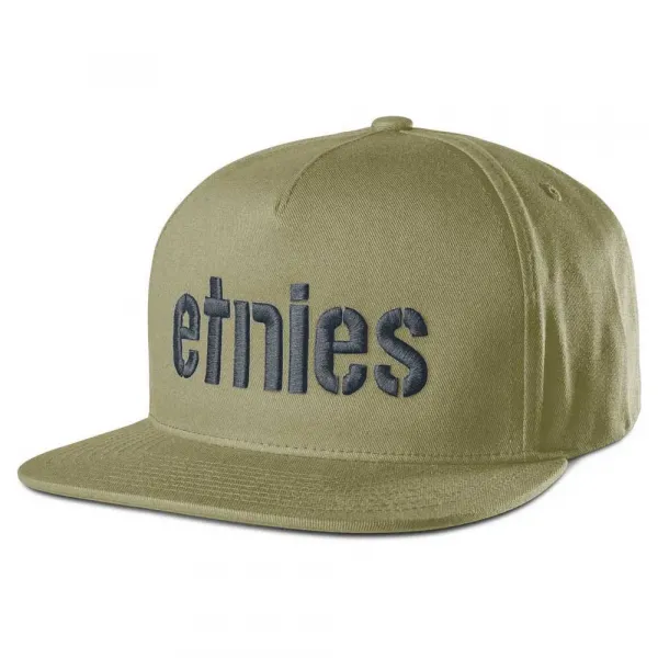 속성: 남성용, 합성 소재, 여성용 특징: 현대적인 플랫 브림이 특징인 클래식 5패널 스냅백 디자인 오래 지속되는 구조적인 형태를 위한 부드러운 버크럼 전면 패널 보강재 고급스럽고 내구성이 뛰어난 마감을 위한 고밀도 자수 에트니스 크라운 로고 진정한 느낌을 더하는 후면의 미묘한 에트니스 클램프 로고 사양: 소재: 폴리에스터 65%, 면 트윌 35%