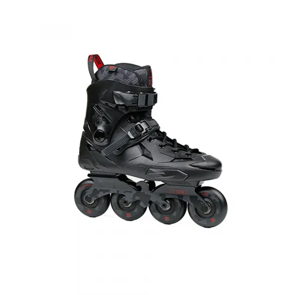 이 스케이트는 슬라롬에 맞게 스케이트를 조정할 수 있는 로커드 액슬이 있는 EGO lite CNC 6000 시리즈 알루미늄 프레임, 높은 반발력의 PU 휠, 빠른 ABEC 7 크롬 베어링으로 완성됩니다.