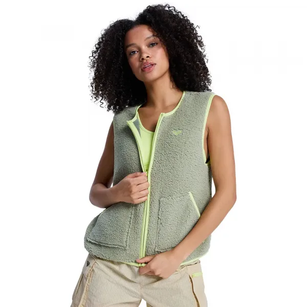 특징:핏: 레귤러 집업 조끼, 핸드 포켓, 밑단 컬러 엘라스틱 바인딩, 소재: 따뜻한 셰르파 소재로 편안함과 부드러운 촉감, 소재: 재활용 폴리에스터.