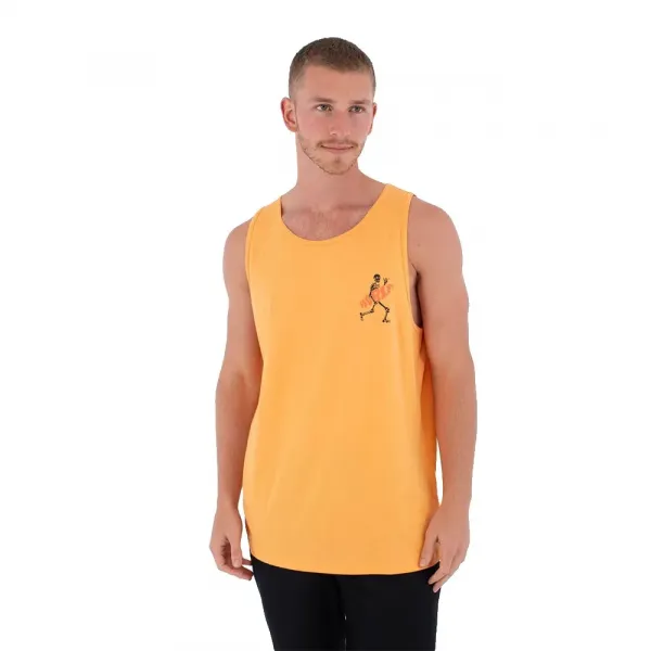 특징: 클래식하고 편안한 실루엣을 위한 레귤러 핏 민소매 티셔츠.