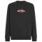 깔끔한 라인, 90년대 감성의 브랜디드 체스트 프린트, 래글런 소매가 특징인 이 스웨트셔츠는 라이딩 전후 옷장에 필수 아이템입니다